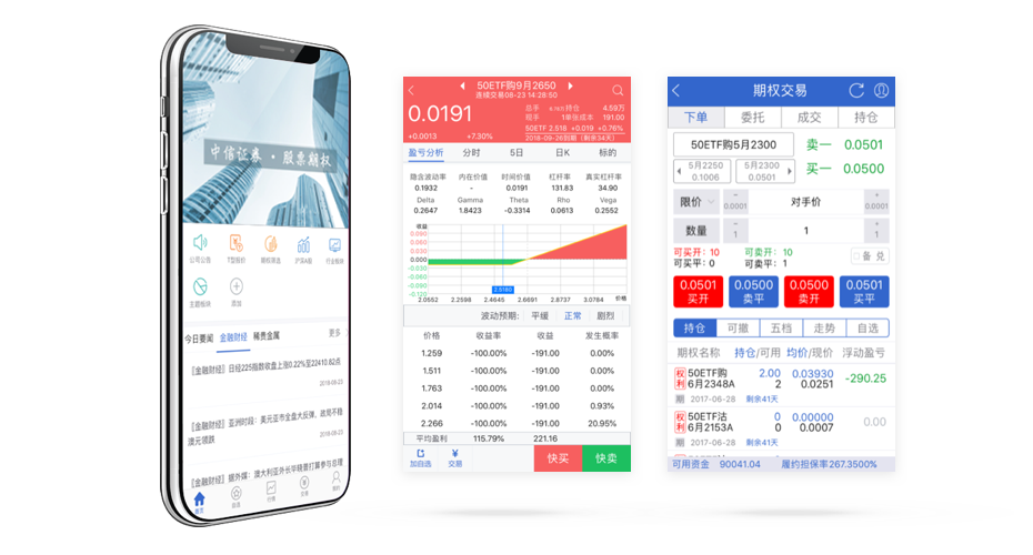 至信期权专版 中信证券至信期权专版是原股票客户端基础上发展而来的一款专业期权交易软件,委托界面针对期权交易特点设计,能够设置止盈止损、预埋单、风控单、拆单、多账户等功能。我公司的特色服务也在此款客户端上呈现,比如期权买入额度的自助调整。